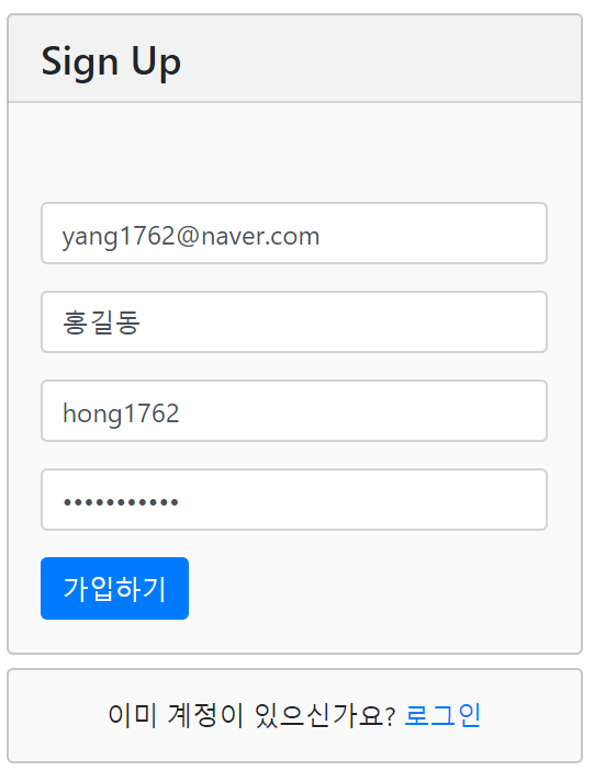 구축된 회원가입 페이지