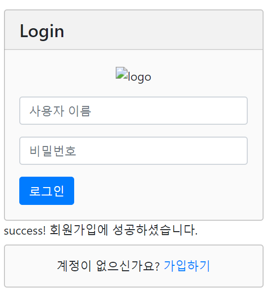 회원가입 성공시의 메세지와 login 페이지로 redirect