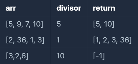divisor로 나누어 떨어지는 element가 하나도 없다면 배열에 -1을 담아 반환하세요.