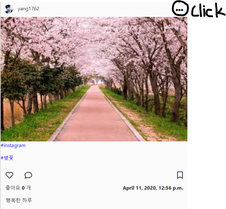 해시테그에 대한 수정 및 삭제 과정은 나중에 따로 작성하도록 하겠다.