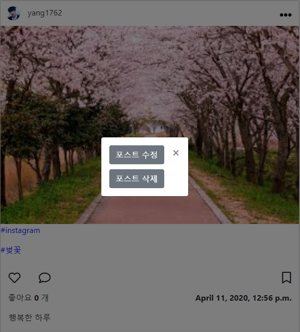 인스타그램 클론코딩 (포스팅 수정, 삭제) 본문
