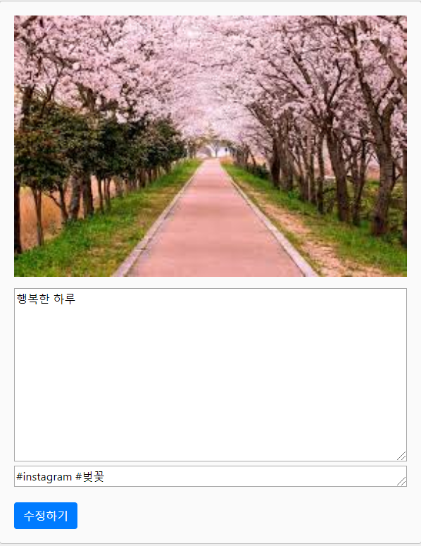 포스팅을 업로드 했을 당시의 데이터가 입력 칸에 띄워져 있으며, 이를 지우거나 수정하여 입력하면 그 데이터가 DB에 새롭게 입력되어 들어가도록 post_modifyView.py의 코드를 작성하였다.