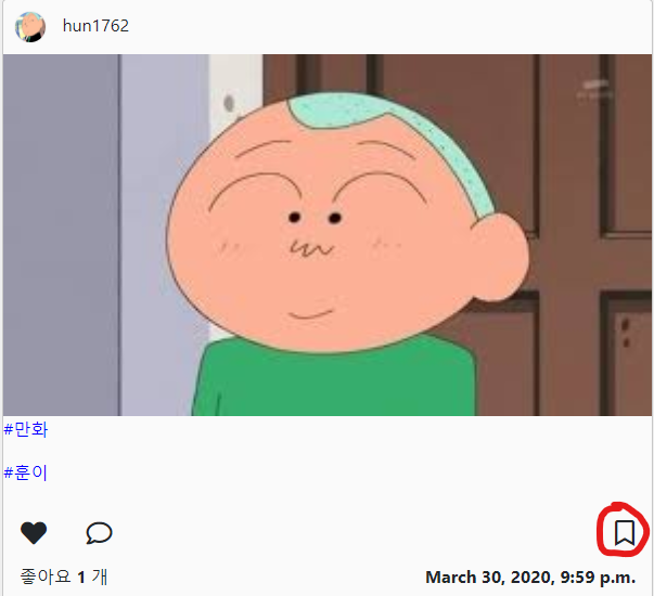 현재 훈이의 게시글을 콜렉션하지 않았기 떄문에 빈 하트 상태로 나타난다.