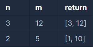 Q. 두 수를 입력받아 두 수의 최대공약수와 최소공배수를 반환하는 함수, solution을 완성해 보세요. 배열의 맨 앞에 최대공약수, 그다음 최소공배수를 넣어 반환하면 됩니다. 예를 들어 두 수 3, 12의 최대공약수는 3, 최소공배수는 12이므로 solution(3, 12)는 [3, 12]를 반환해야 합니다.