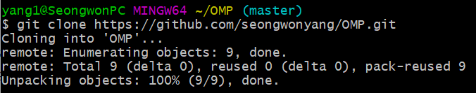 Fork를 진행하고 나서 로컬에 저장소 주소를 입력하여 파일을 내려받는다.