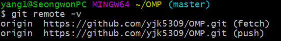 fork 저장소에 clone이 완료되었다면 origin이라는 이름에 fork 저장소가 지정되어 있는 상태가 되었다.
