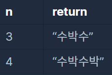 예를 들어 n이 4이면 "수박수박"을 리턴하고 3이라면 "수박수"를 리턴하면 됩니다.